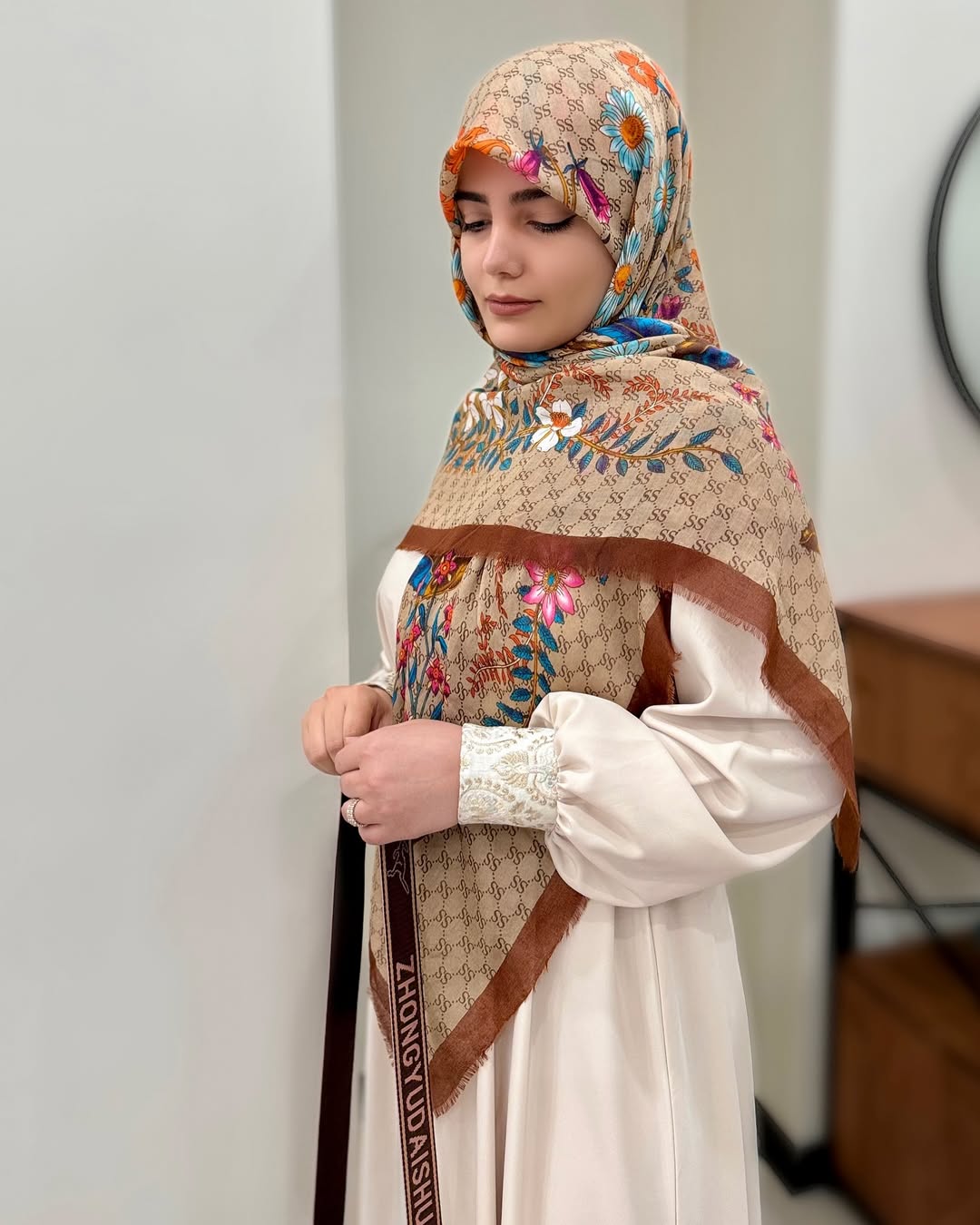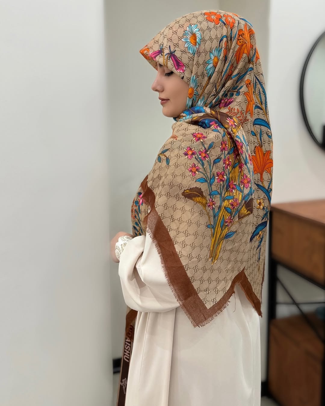 روسری نخ یونیک وارداتی قواره حدود ۱۳۵ دور ریش مناسب تابستان ایستایی عالی مناسب استفاده زیر چادر . . . .