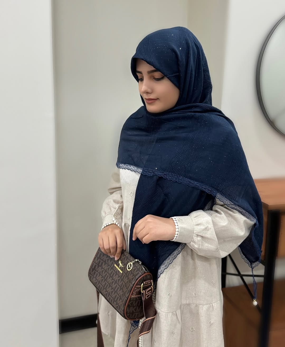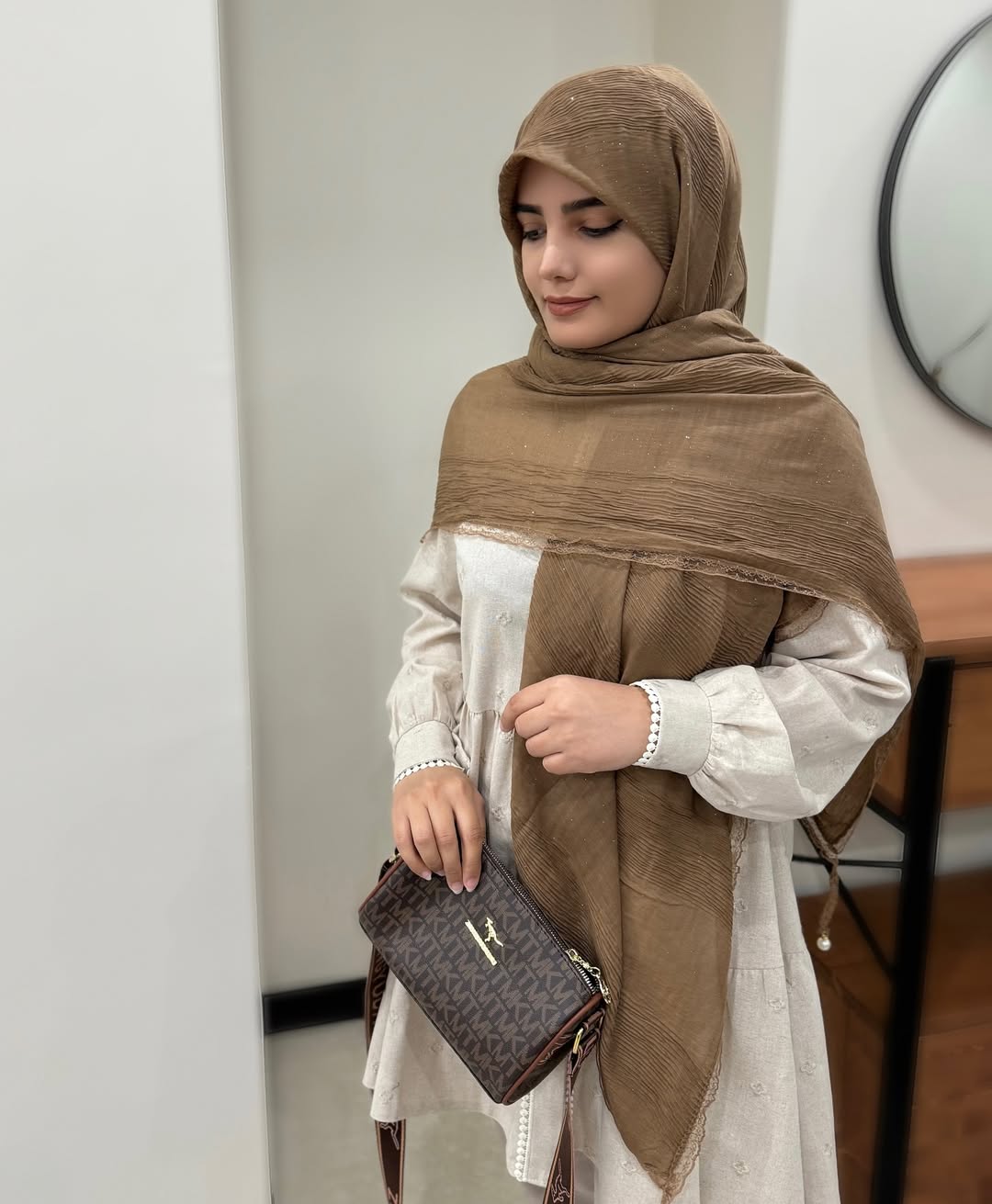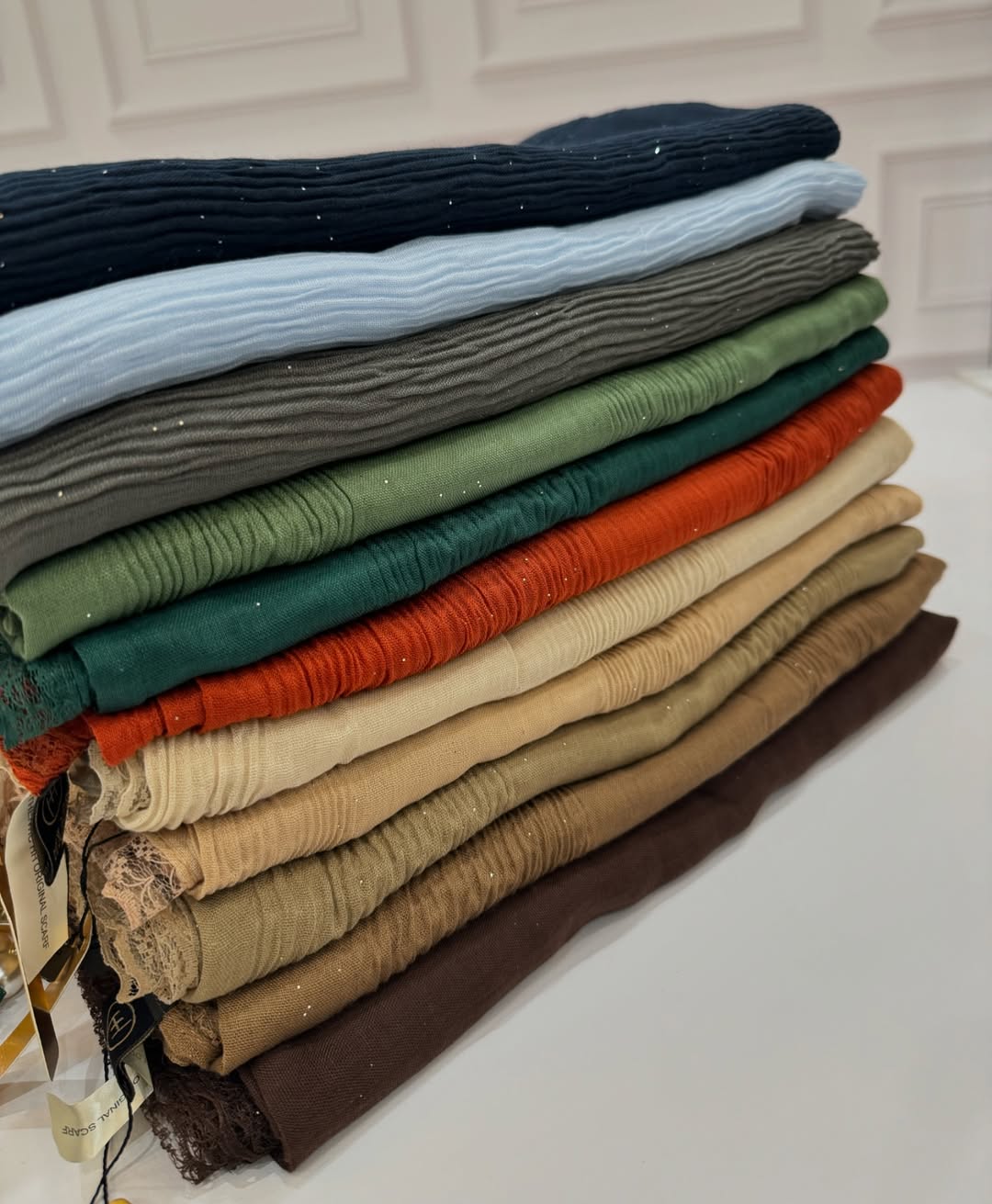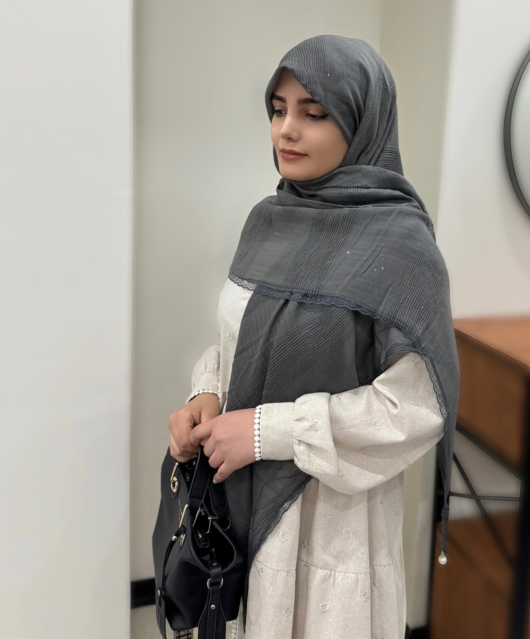 روسری ‌نخ پلیسه شاین وارداتی منگوله مرواریدی قواره 140 کد017