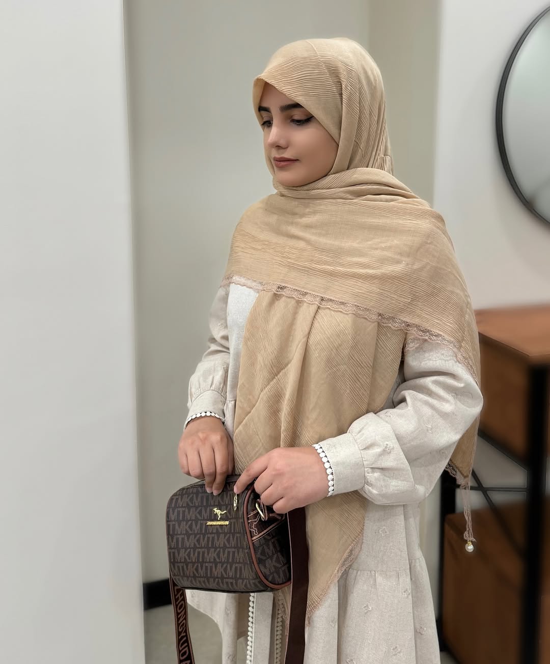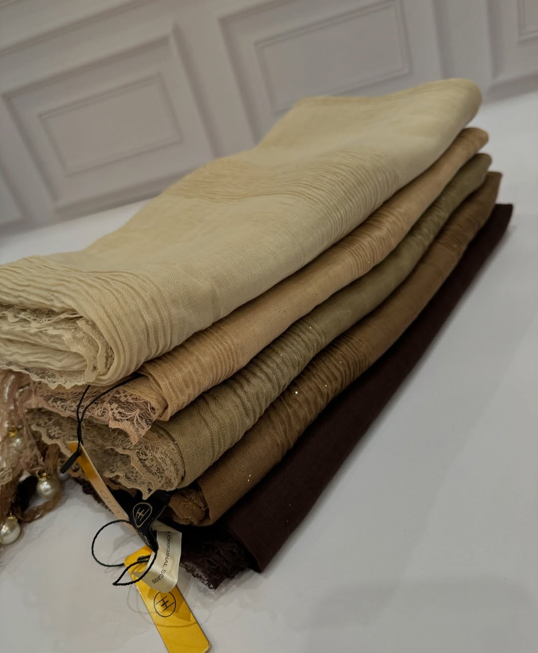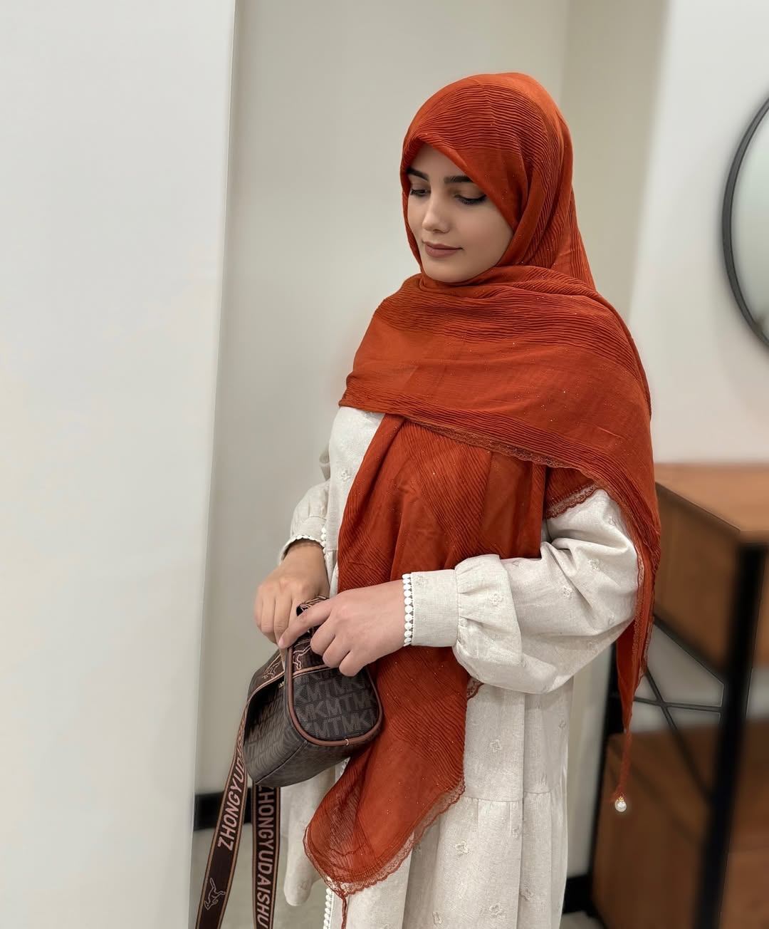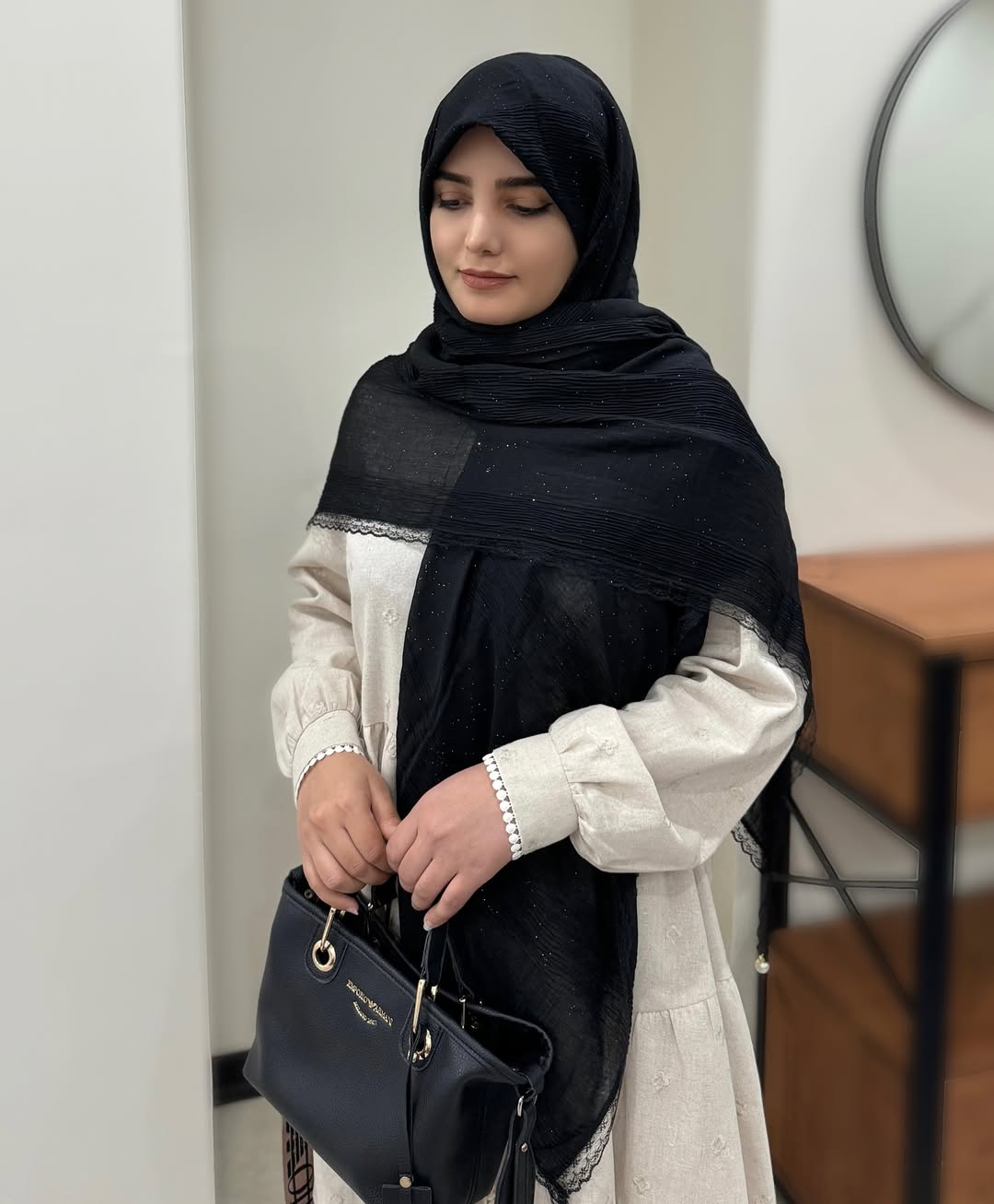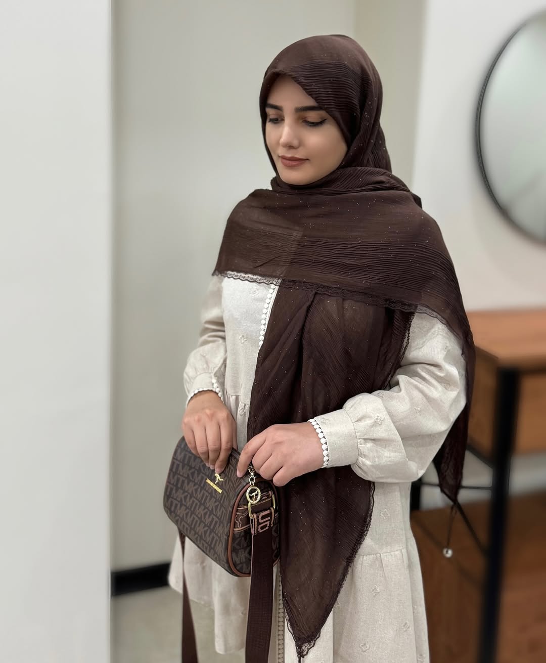روسری ‌نخ پلیسه شاین وارداتی منگوله مرواریدی قواره 140 کد017