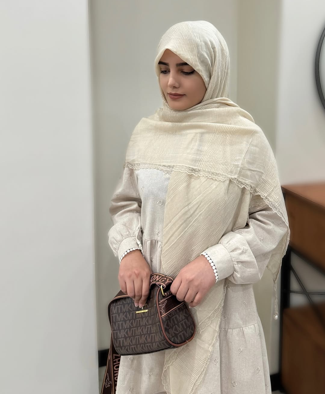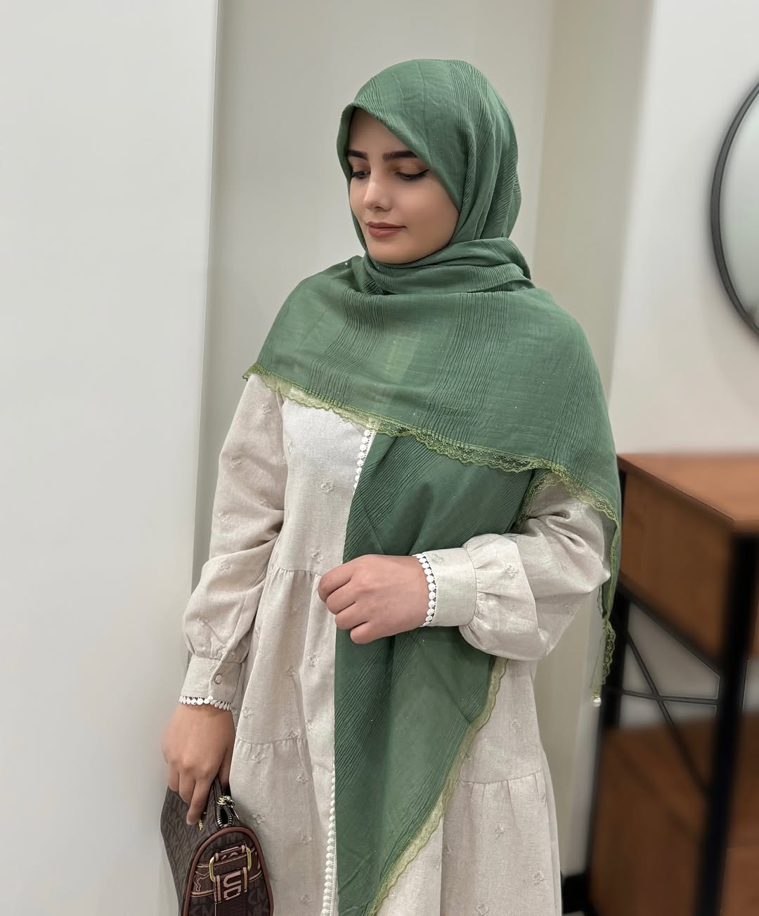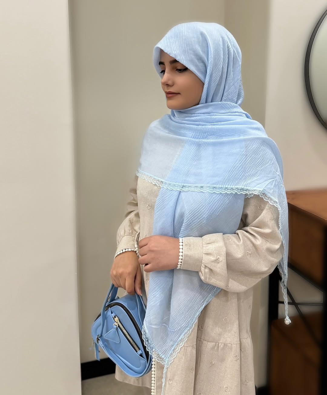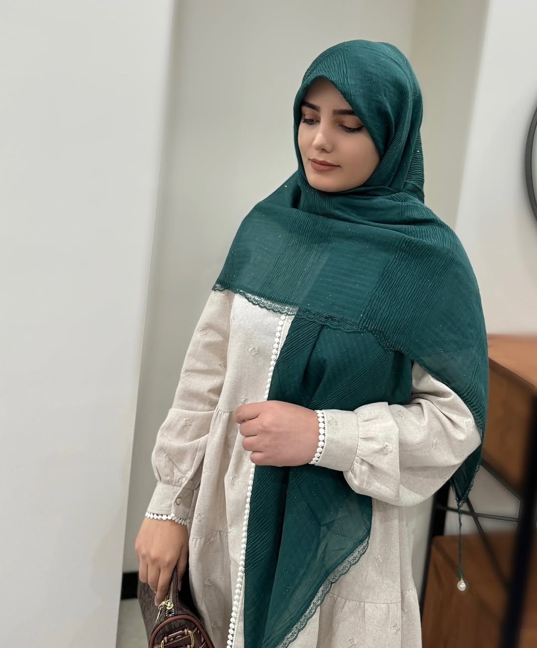 روسری ‌نخ پلیسه شاین وارداتی منگوله مرواریدی قواره 140 کد017