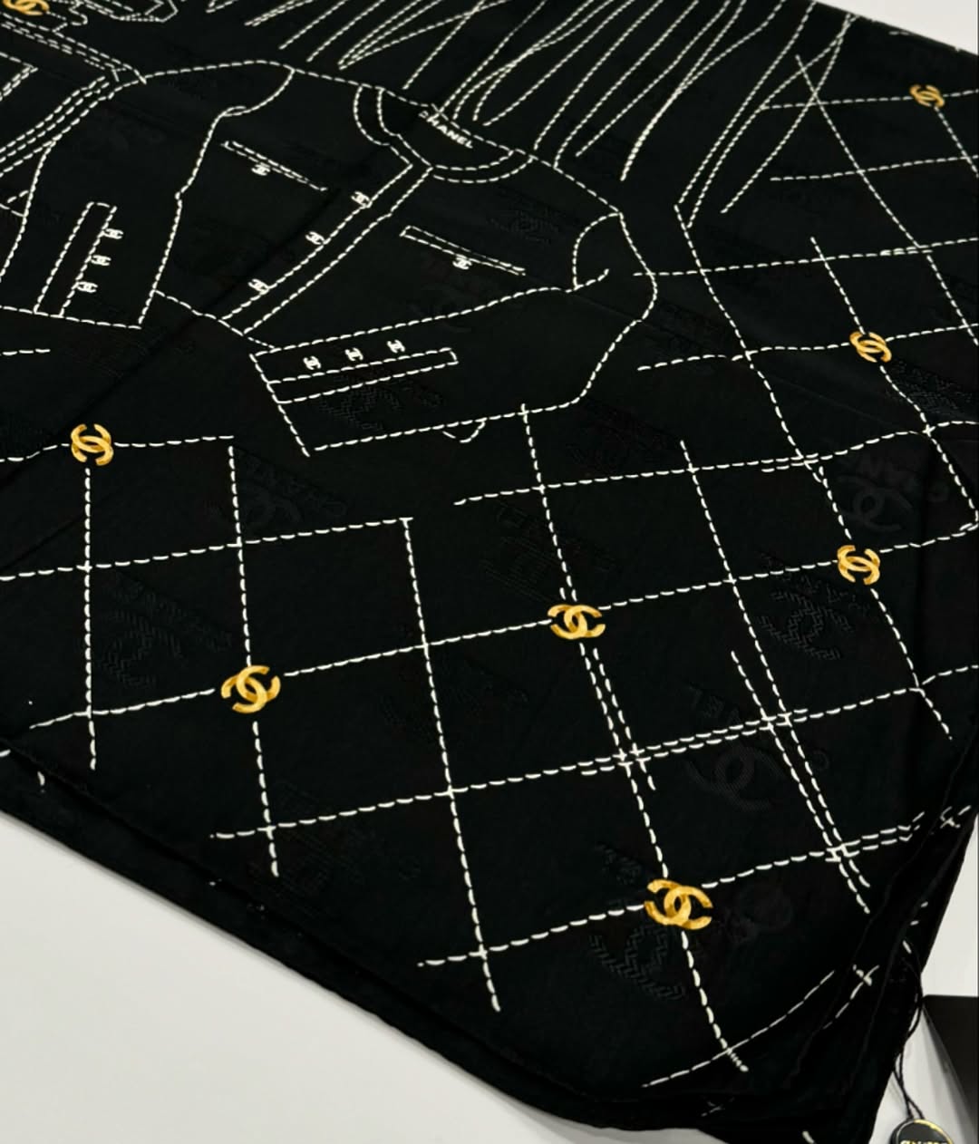 روسری ابریشم ژاکارد های کوالیتی طرح شنل کوکدوزی قواره 135 دوردست دوز کد 022