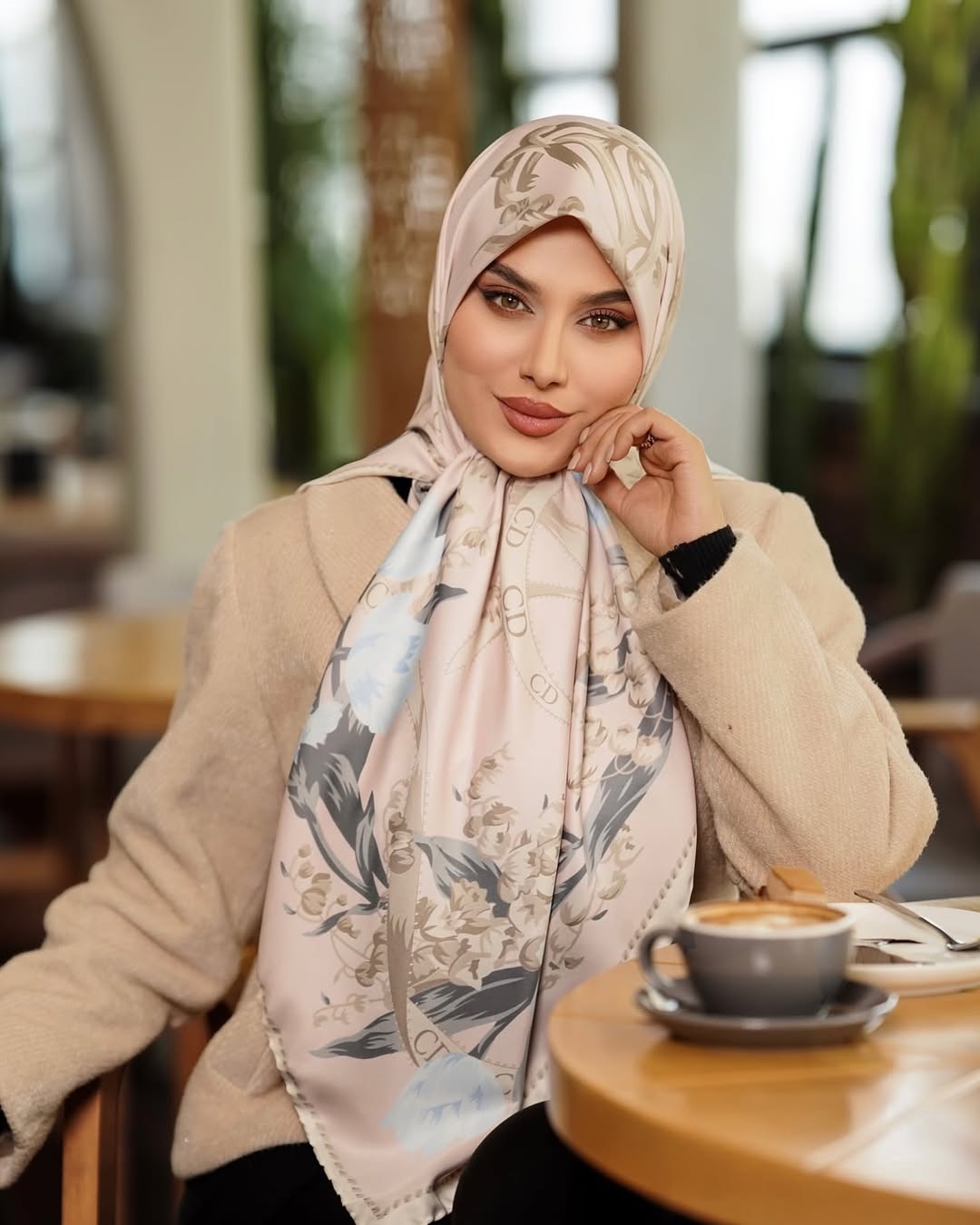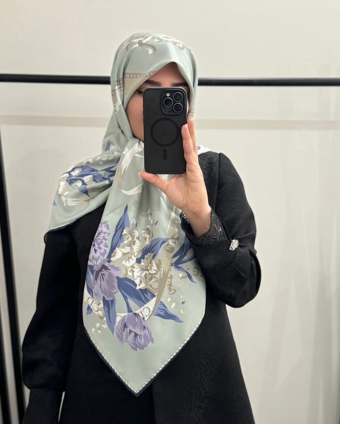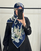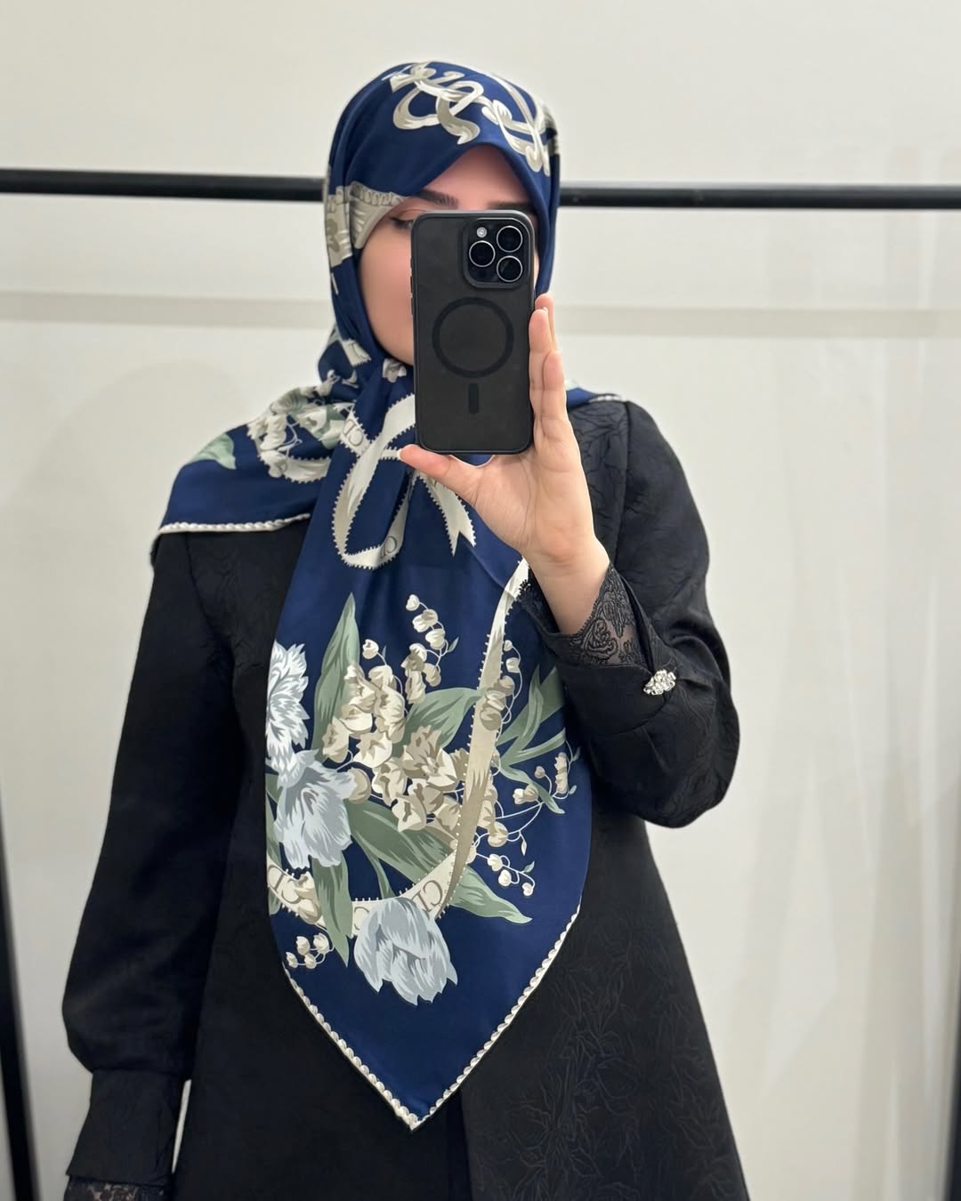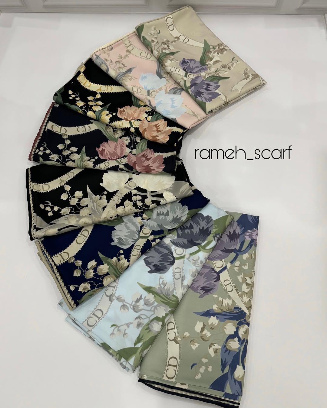 روسری ابریشم کجراه(توییل) دور دست دوز قواره 135 کد 024