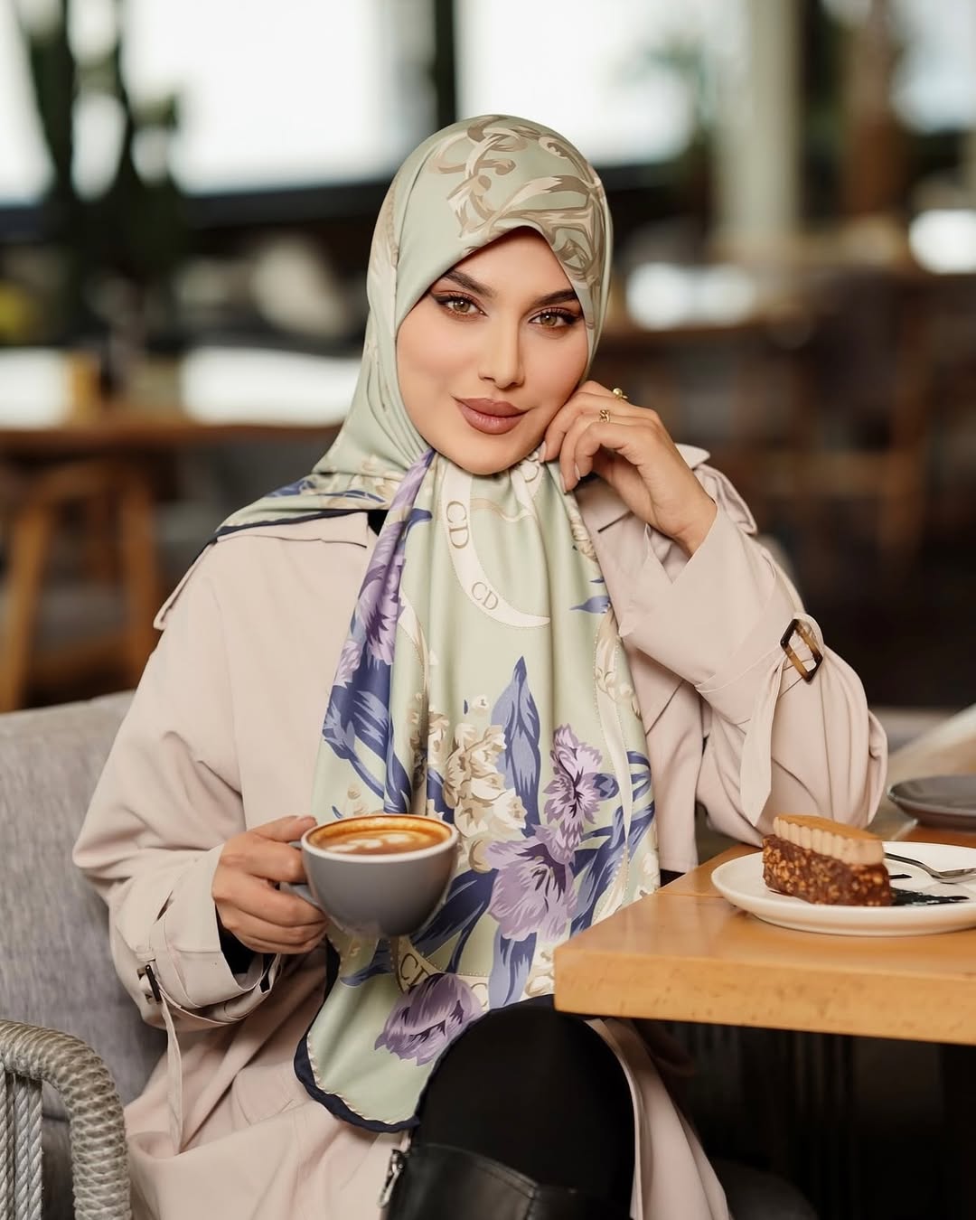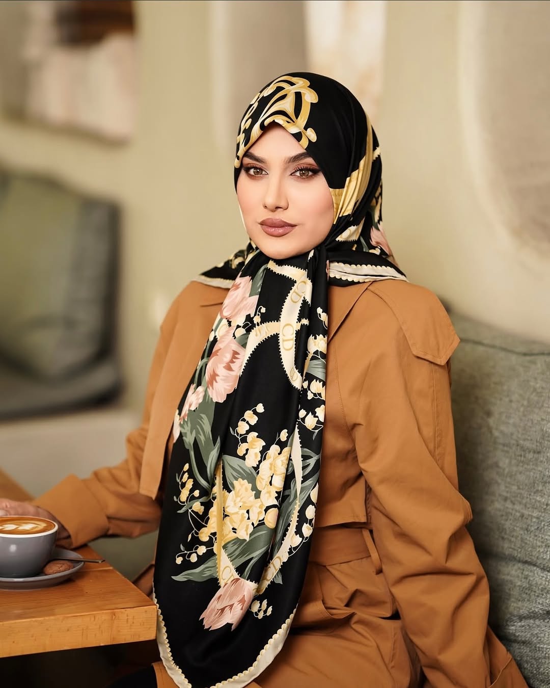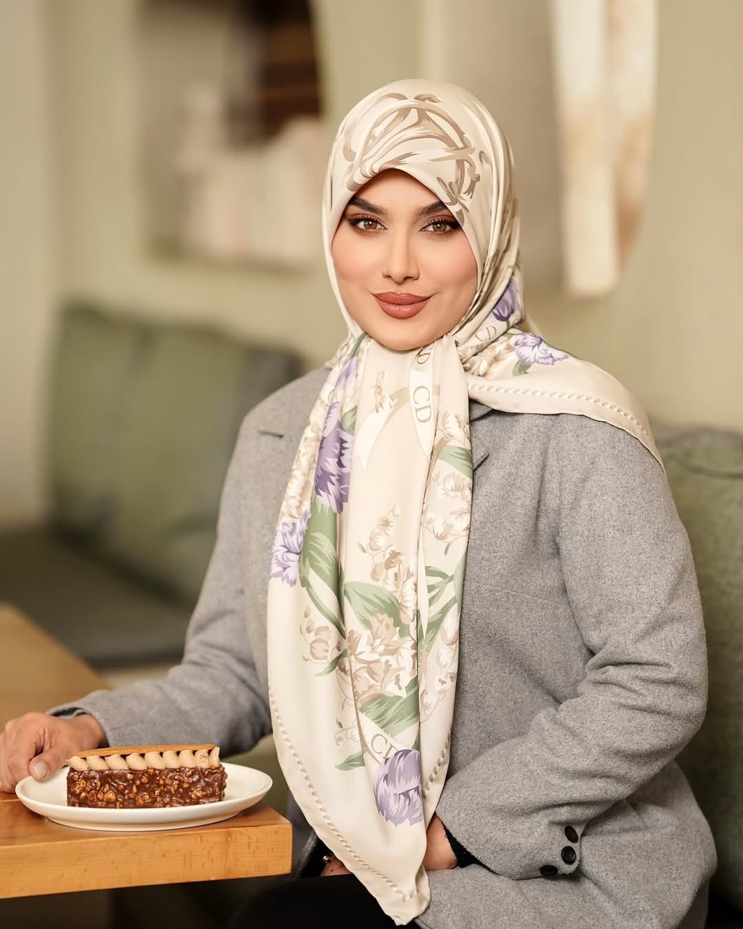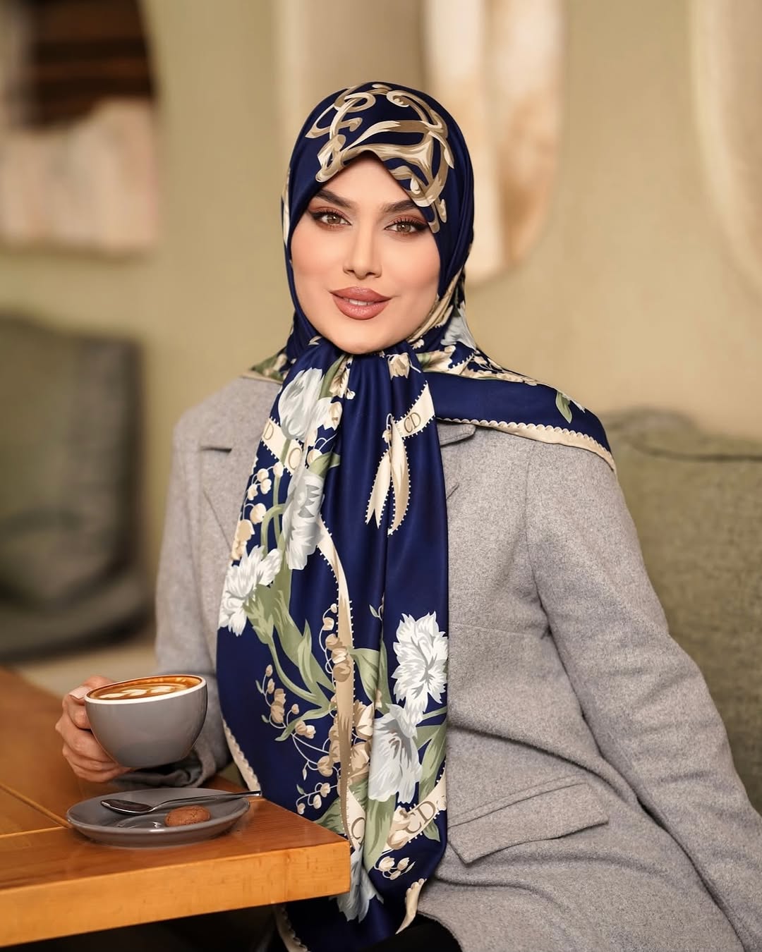 روسری ابریشم کجراه(توییل) دور دست دوز قواره 135 کد 024