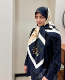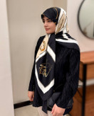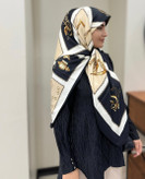 روسری ابریشم توییل هرمس مشکی کرم کد004