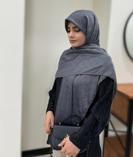 روسری نخ ابریشم ژاکارد دور زنجیر سرمه ایناموجود