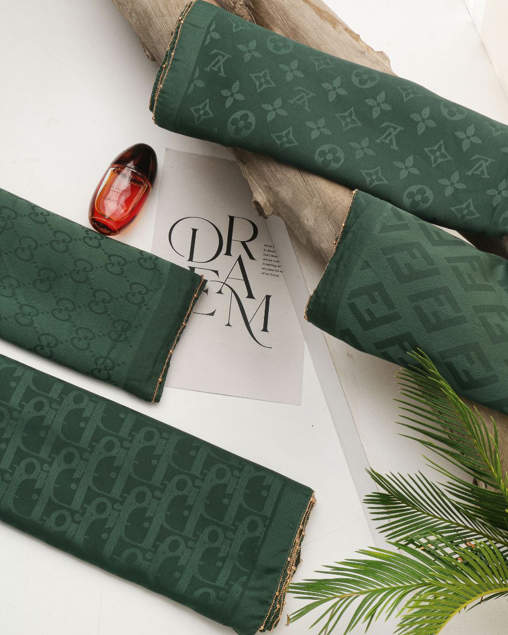 روسری ابریشم ژاکارد های کوالیتی دور دست دوز قواره حدود ۱۳۵ رنگ سبزناموجود